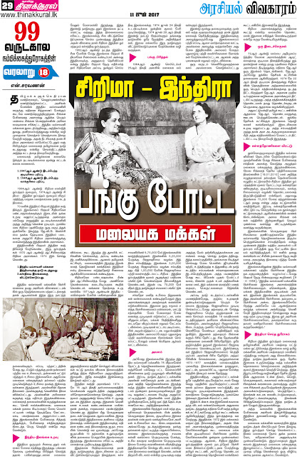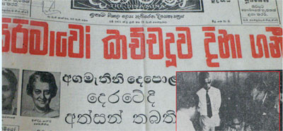 | “சிறிமாவோ கச்சத்தீவை வென்றார்” என்று “தினமின” அரசாங்க நாளிதழின் வெளியான தலைப்புச் செய்தி. |