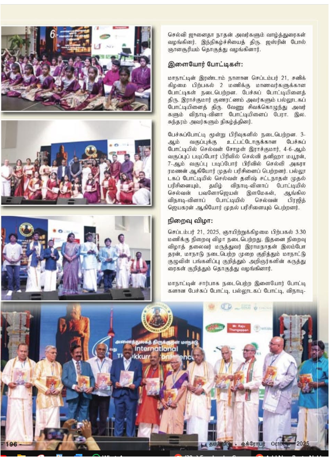 ரொறன்ரோவில் சிறப்பாக நடந்தேறிய 6 ஆவது திருக்குறள் மாநாடு October 2, 2025 nakkeran அறிவியல், இலக்கியம், சமயம், பொது, வரலாறு 0 https://www.facebook.com/reel/1071749188349216